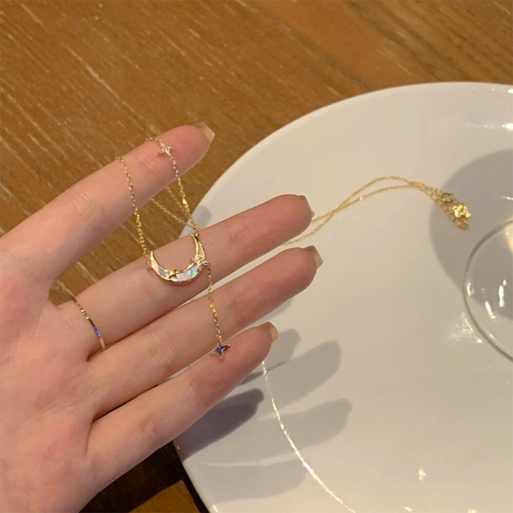 細め チェーンネックレス 星 スター ムーン 月モチーフ アクセサリー ゴールド 可愛い女性 きれいめ 首飾りおしゃれ 韓国ファッション 誕生日 プレゼント 大人女子会パーティ