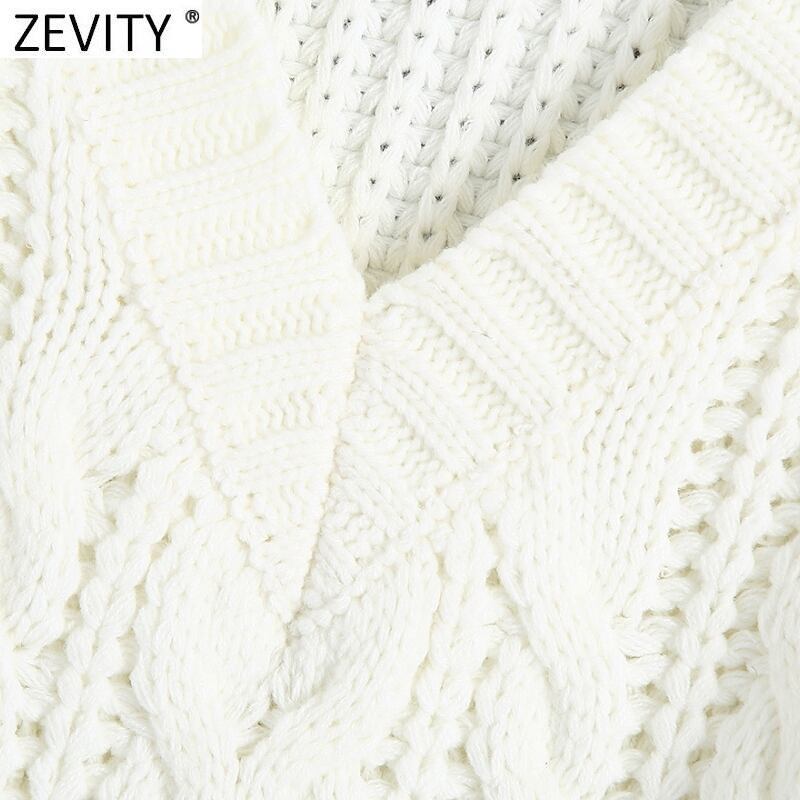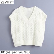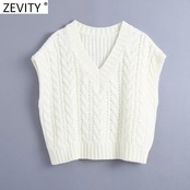 Zevity WomenVネックツイストホワイトニットセーターノースリーブルーズベストシックプルオーバートップスS487 Amy83153837992