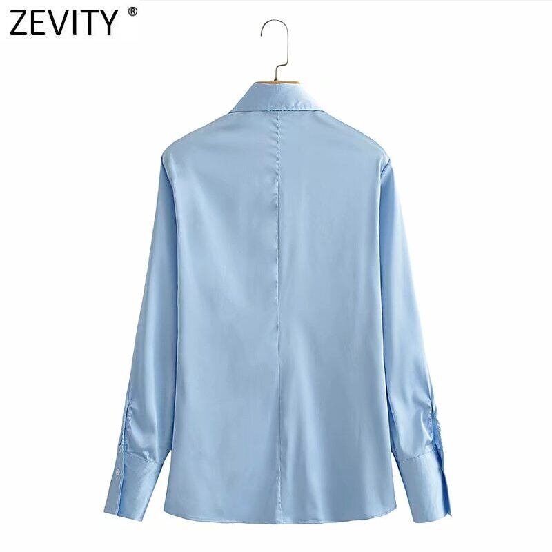 ZEVITY2021レディースソリッドソフトサテンスモックブラウス長袖シングルブレストシックシャツトップスLS9277 Amy71690698116