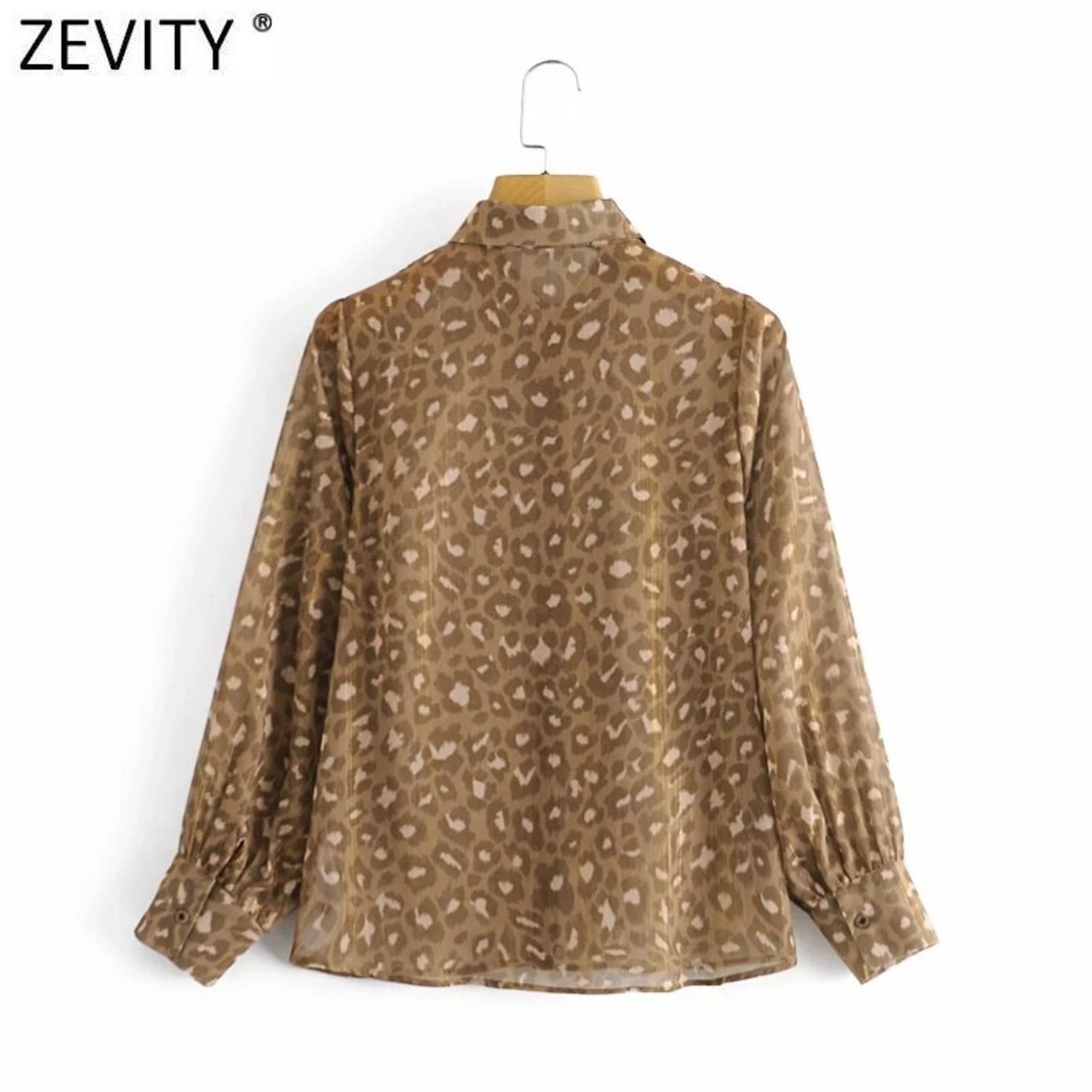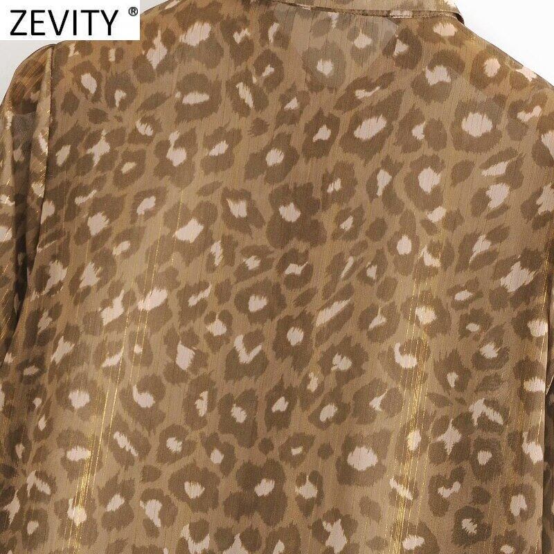 Zevity Women Vintage Turn Down Collar Leopard Print Metal Line Smock Blouse Chiffon Shirts Chic Tops LS9047 Amy71029326042