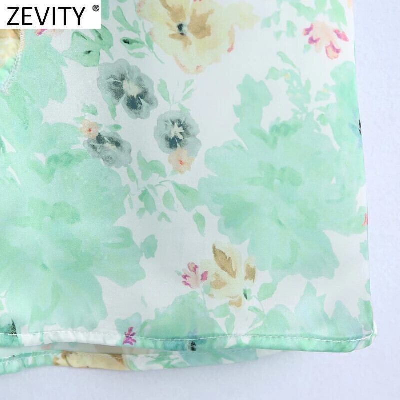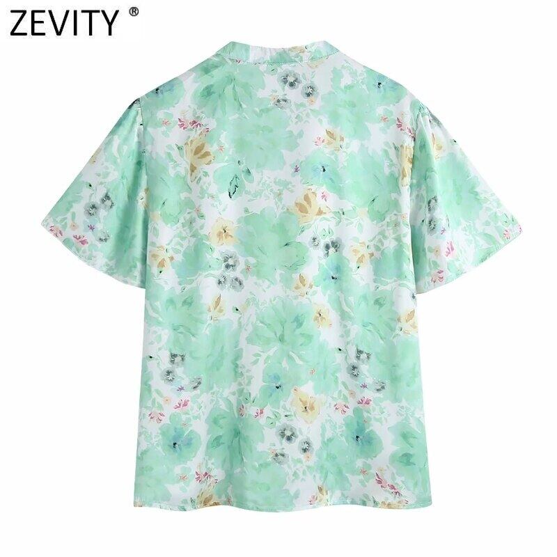 ゼビティレディーススウィートフローラルプリントグリーンスモックブラウスVネックカスケードフリルシャツシック半袖トップスLS9367 Amy38139542633
