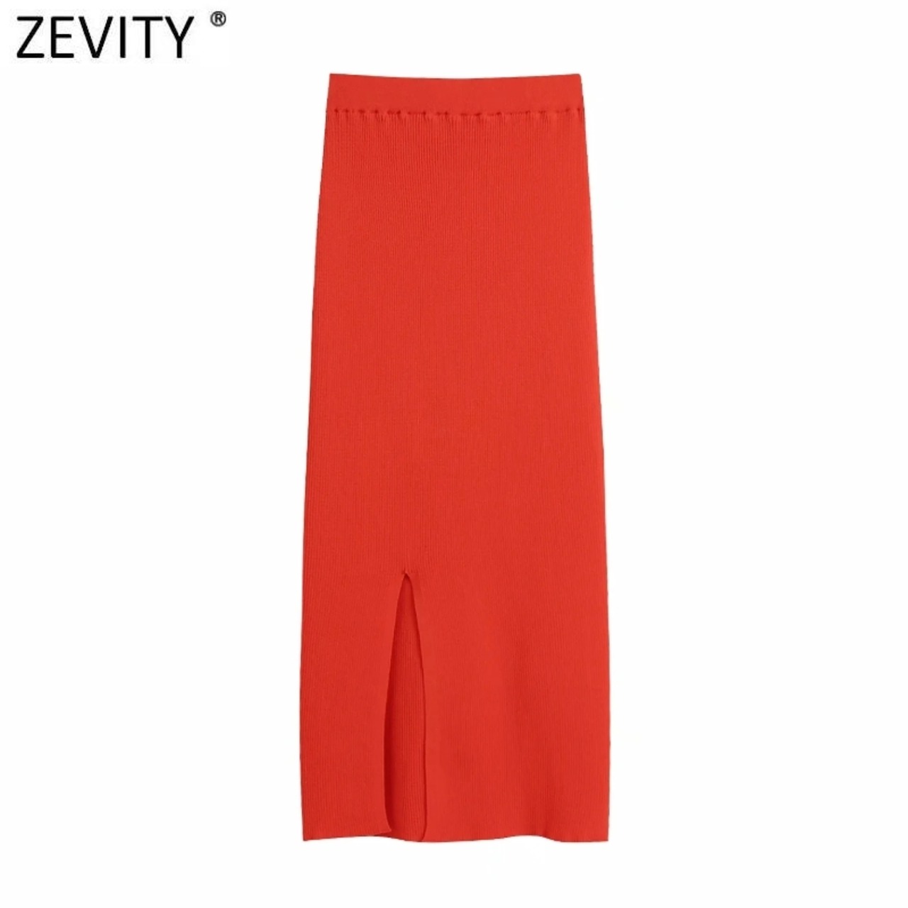 ZevityWomenソリッドカラースプリットニットサロンスカートFaldasシックスリムヒップパッケージストレート Amy42425500118