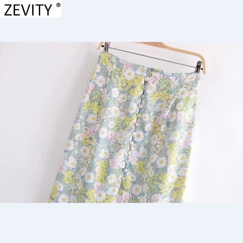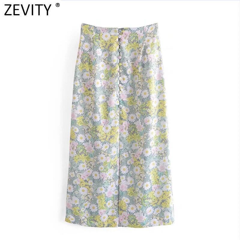 Zevity 2021 Women Sweet Floral Print Single Breasted A Line Midi Skirt Faldas Chic Back Zipper Slim Vestido QUN779 Amy81696248222