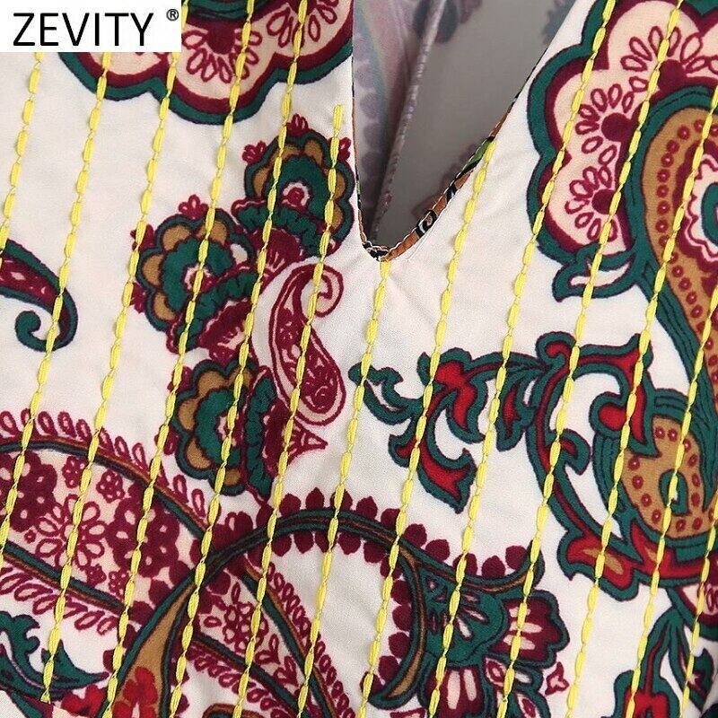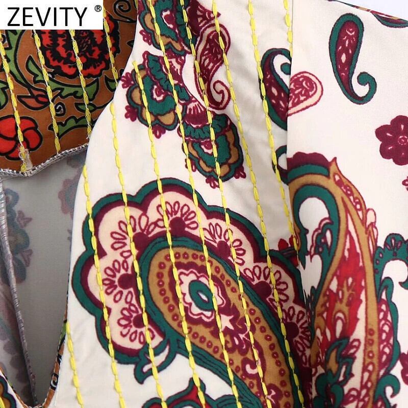 Zevity Women Vintage V Neck Paisley Print Lace Up Waist Shirt Dress Chic Retro Totem Floral Court Vestidos DS8341 Amy91015682753
