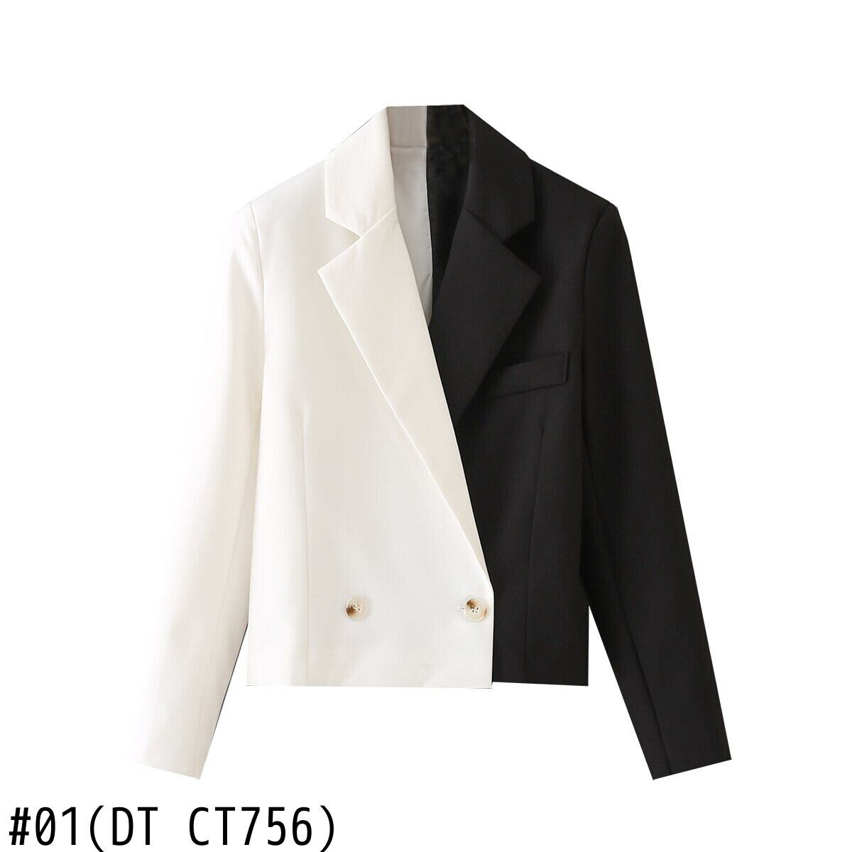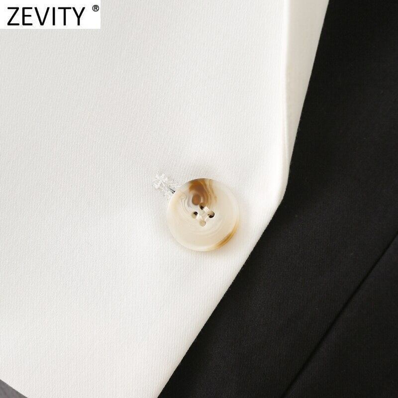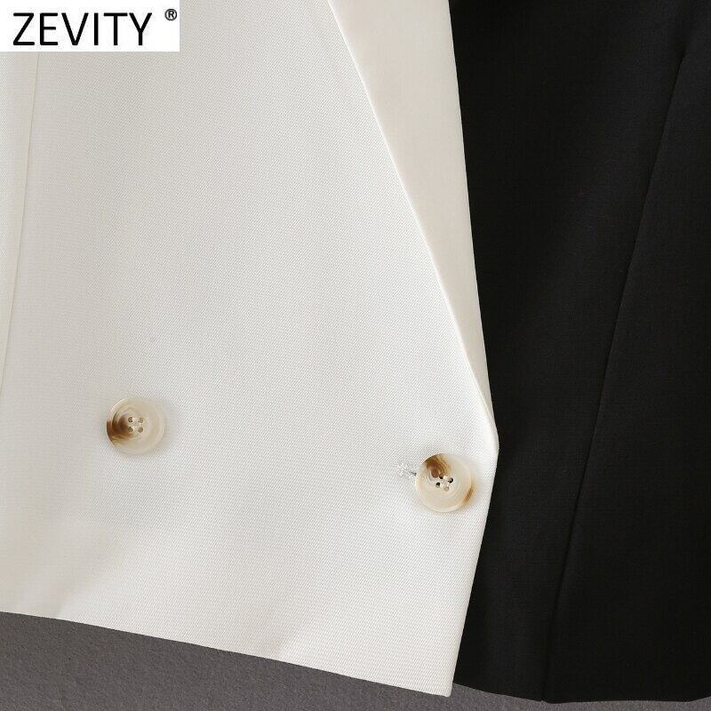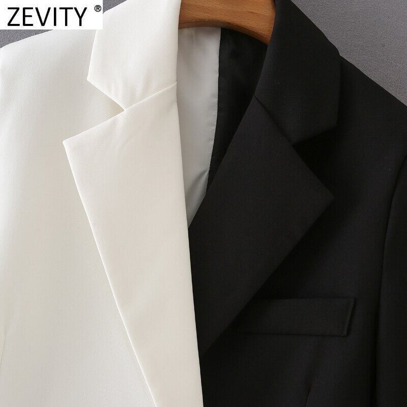 Zevity Women Vintage Black White Patchwork Blazer Coat Chic NotchedCollar長袖ビジネススーツVesteCT756 Amy26930873030