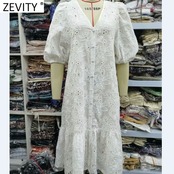 Zevity WomenVネックレース刺繡ブレストシャツドレスランタンスリーブ裾フリルVestidosシックなドレスDS8172 Amy22385372574