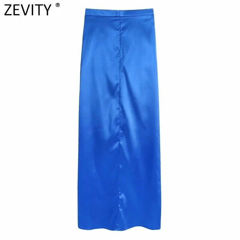 Zevity Women Pleats Hem Irregular Midi Skirt Faldas One Button Blue Satin Vestidos QUN847 Amy55538252683