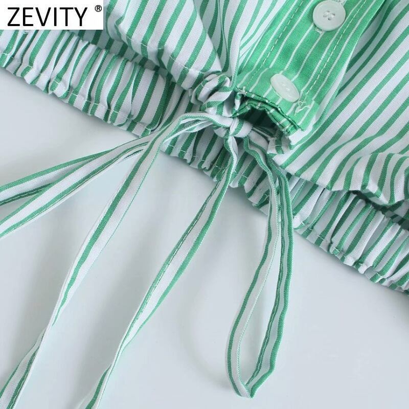 Zevity Women Patchwork Striped Print Short Smock Blouse Office Lady Hem Elastic Bow Shirts Chic Crop Tops LS9209 Amy16721604344