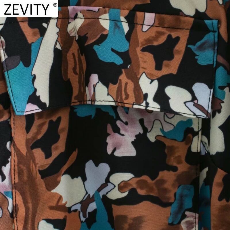 ZevityWomenヴィンテージアブストラクトグラフィティプリントポケットシャツドレス長袖ボウサッシュVestidoChic DS4902 Amy45564226361