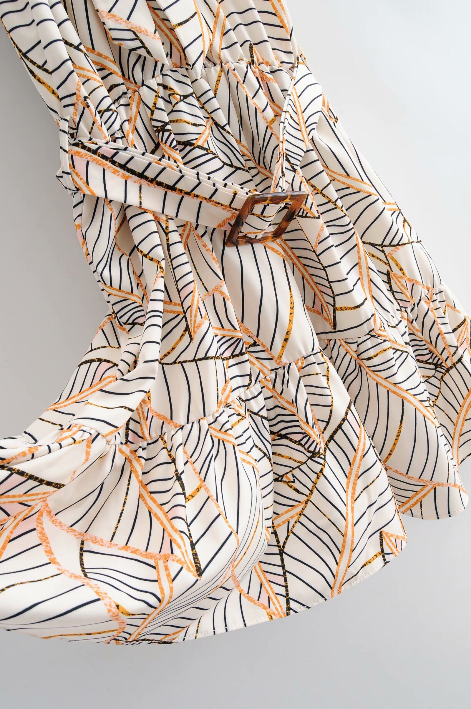 スタンドカラーノースリーブプリントサッシミニドレス女性の弓タイバックボタンvestidosシックな裾フリルドレスDS3866 Amy71997685395