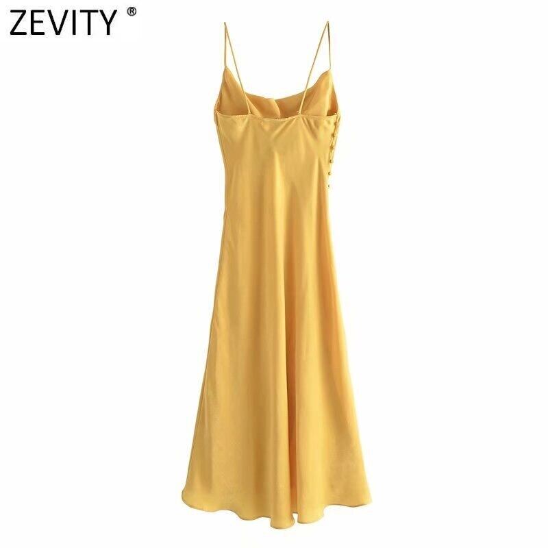 Zevity2021女性クロスVネックボタンスリングミディドレスサマースパゲッティストラップスプリットインナーベスティドスDS8727 Amy73827423123