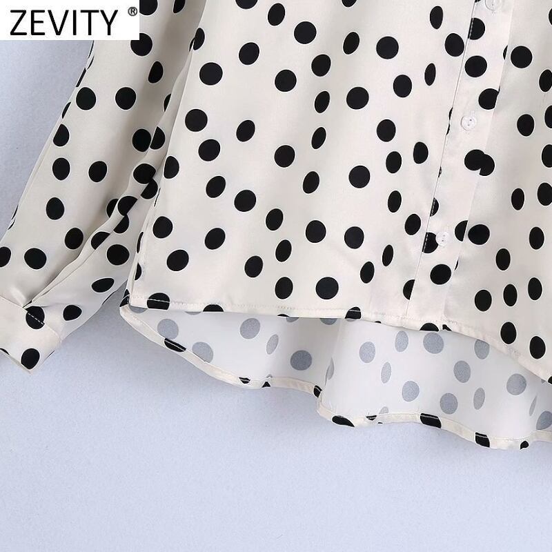 Zevity Women Polka Dots Print Breasted Loose Blouse Office Back Pleats Shirts Chic Tops LS9654 Amy38883265921