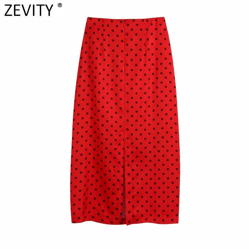 Zevity Women Polka Dots Print Red Slim Straight Skirt Faldas Summer Back Split Zipper Party Vestidos QUN869 Amy46590056250