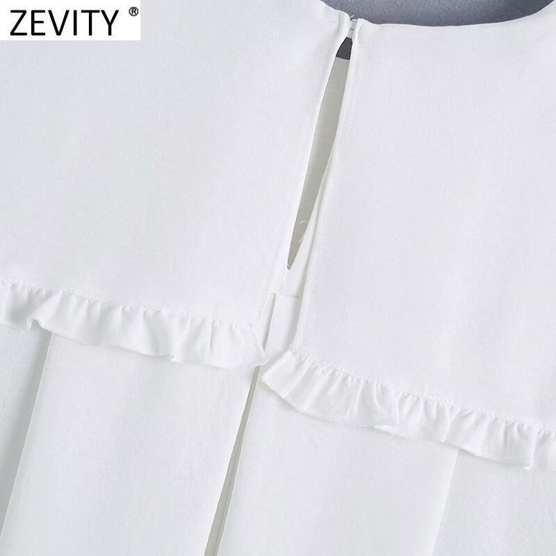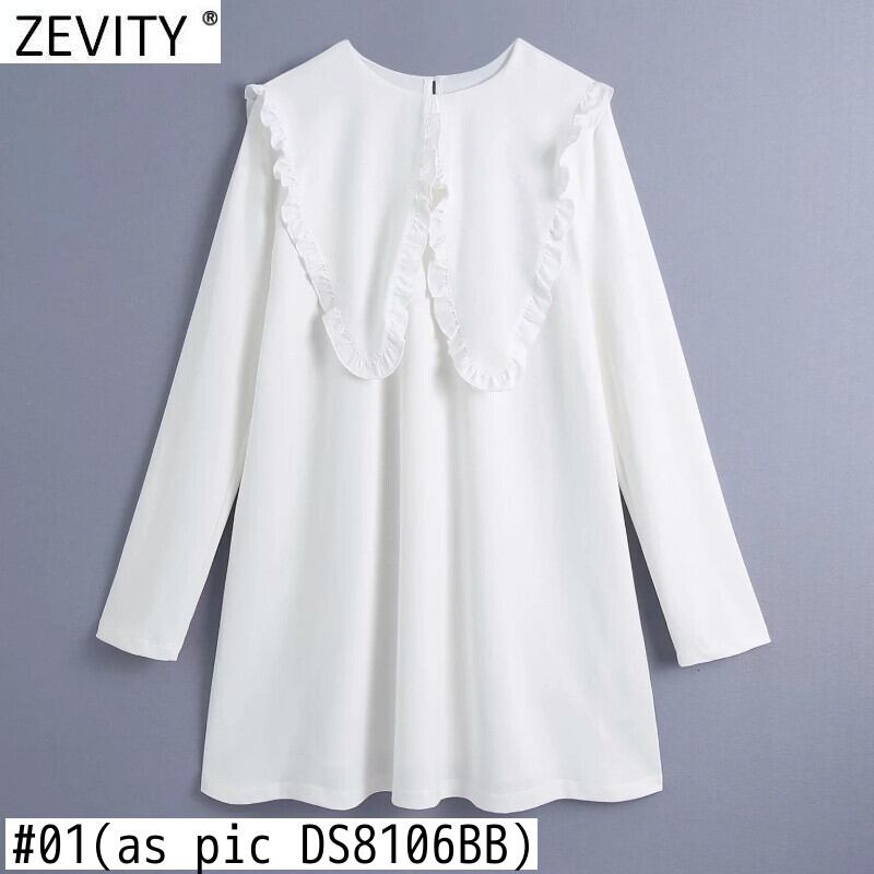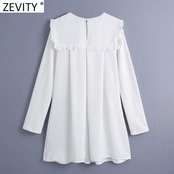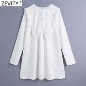 Zevity Women Street Big Perter Pan Collar Patchwork White Mini Shirt Dress Chic Agaric Lace Ruffles Vestido DS8106 Amy8508990581