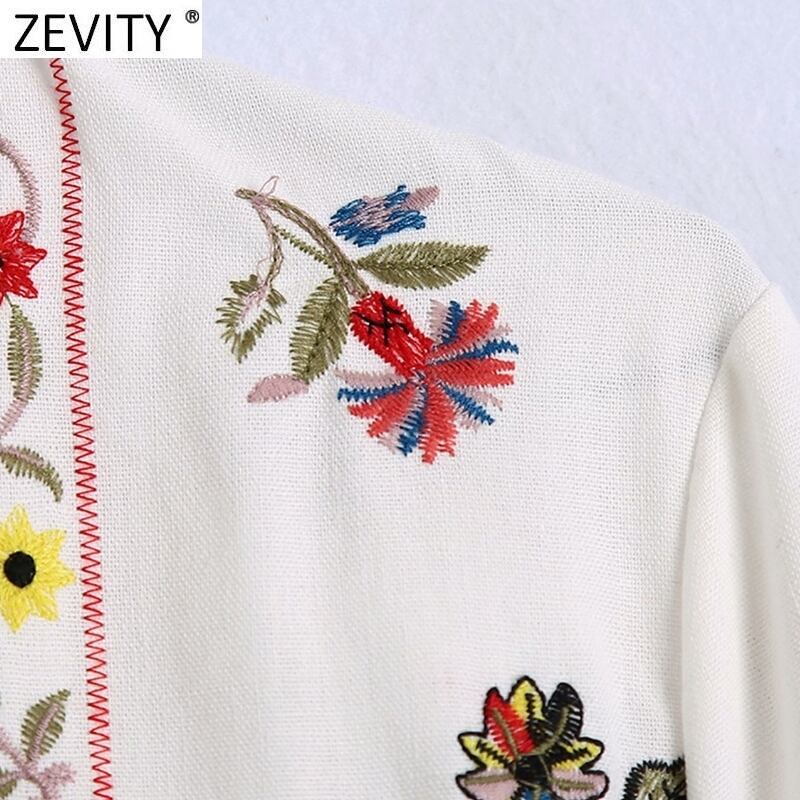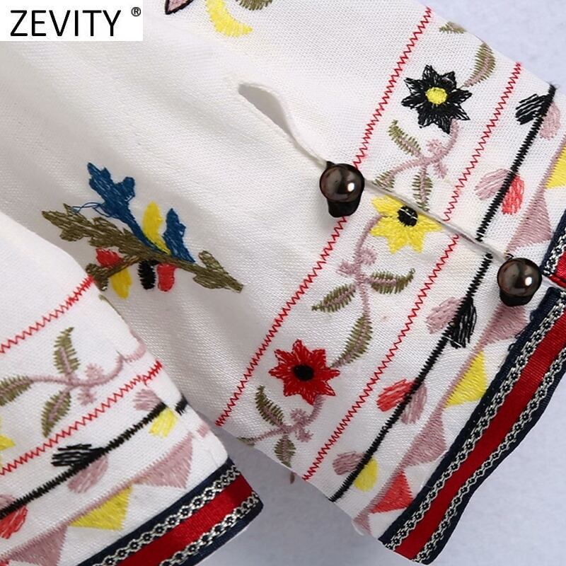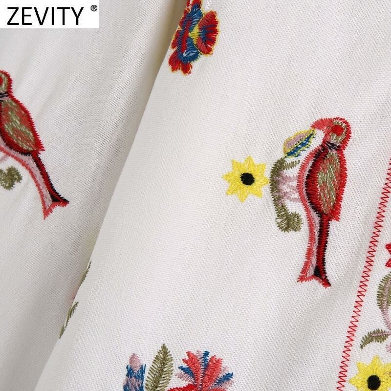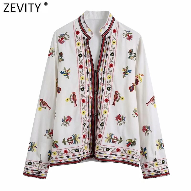 Zevity Autumn Women Vintage Floral Birds Embroidery Blouse Lady Stand Collar Shirts Chic Ethnic Tops LS9653 Amy1673260494