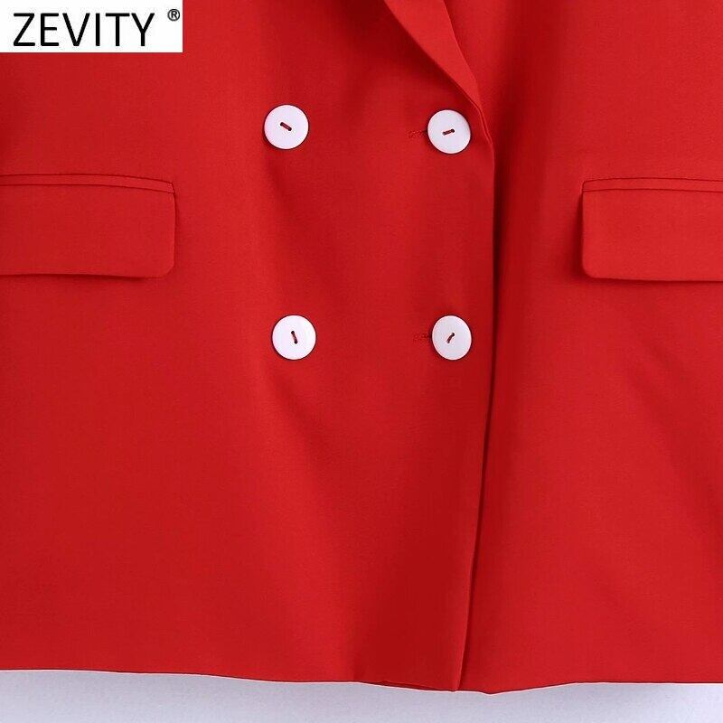 ZevityWomenノッチカラーダブルブレストレッドブレザーコートヴィンテージルーズアウターシックスーツVesteCT758 Amy70146199888