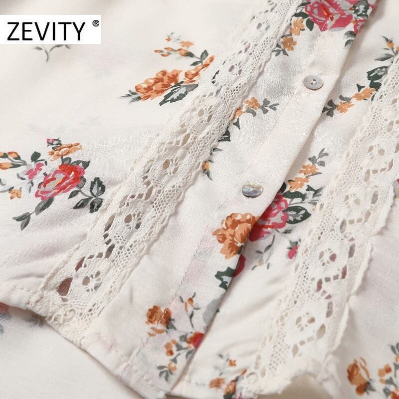 ZEVITYレディースエレガントレースパッチワークプリントカジュアルスモックブラウスオフィスレディースoネックパフスリーブシャツシックなブルサトップスLS7104 Amy49014615246
