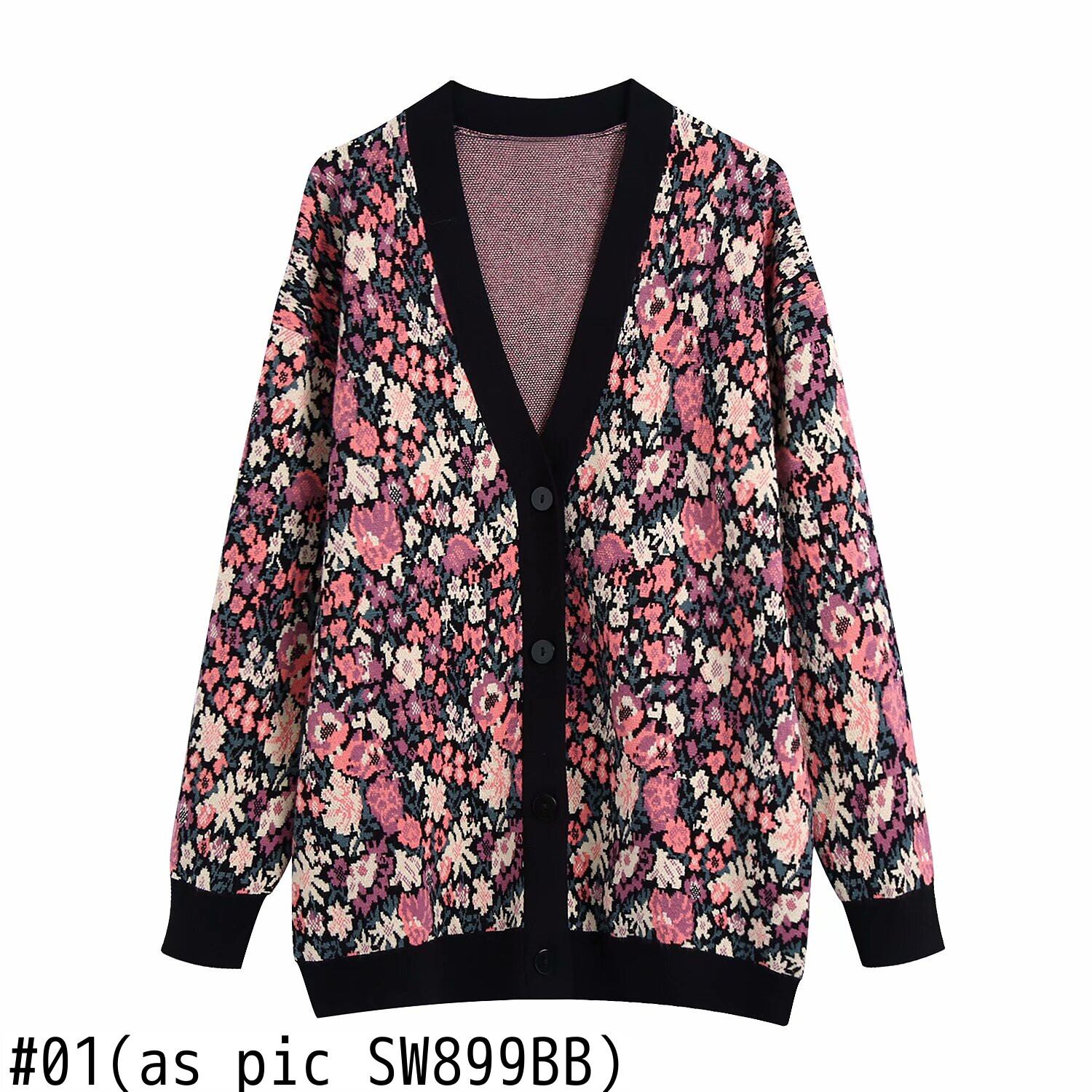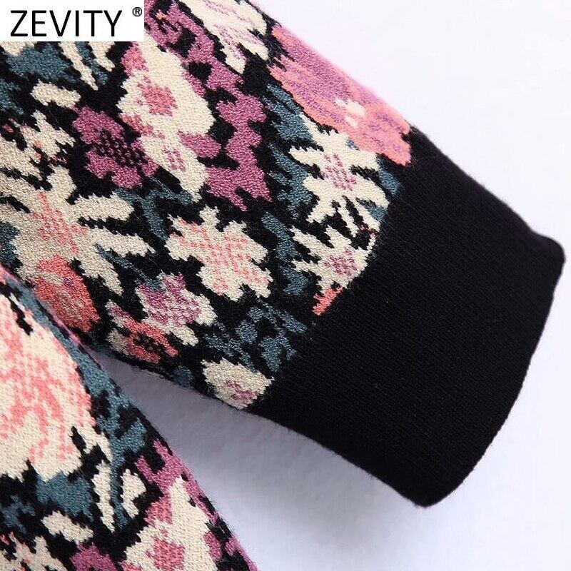 Zevity Women Vintage V Neck Floral Print Jacquard Knitting Cardigans Sweater Chic Single Breasted Coat Tops SW899 Amy21682638532