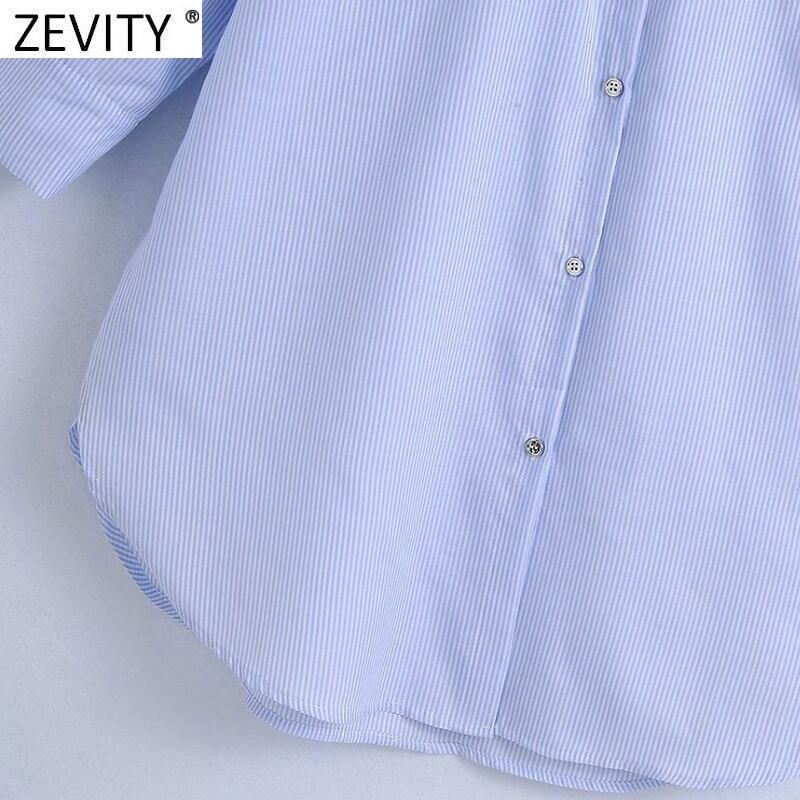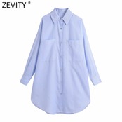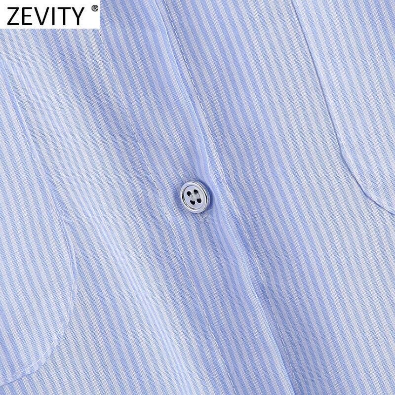 Zevity2021レディースダブルポクレットパッチストライププリントロングスモックブラウスOLレディブレストシャツシックトップスLS9536 Amy3275784308