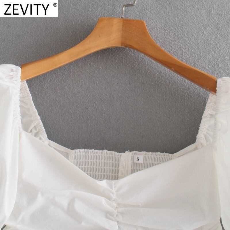 ゼビティレディースヴィンテージスクエアカラープリーツスリムショートシャツレディパフスリーブバック伸縮性ジッパーブラウスルーパスシックトップスLS9133 Amy99177897849