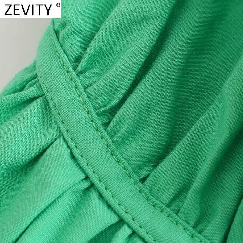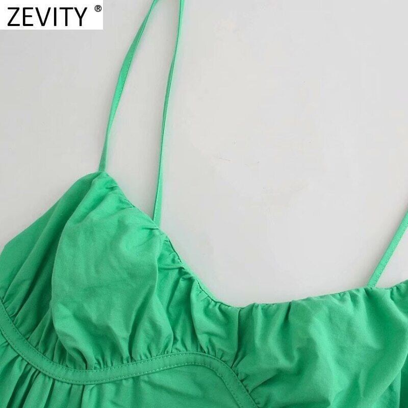 Zevity2021女性VネックプリーツグリーンスリングミニドレスサマースパゲッティストラップインナーベスティドスDS8720 Amy63693534713