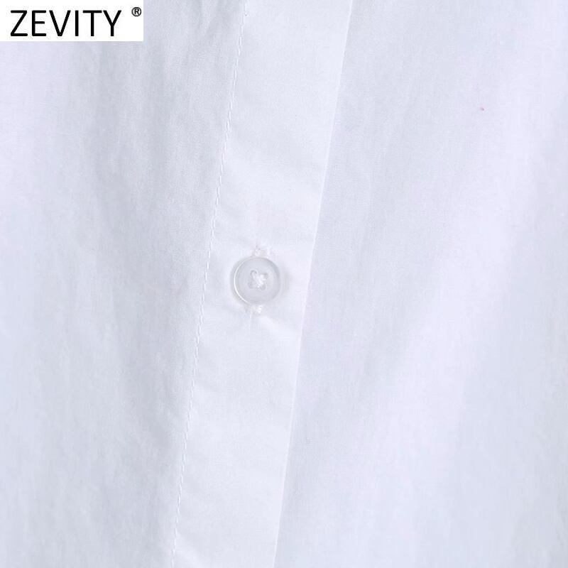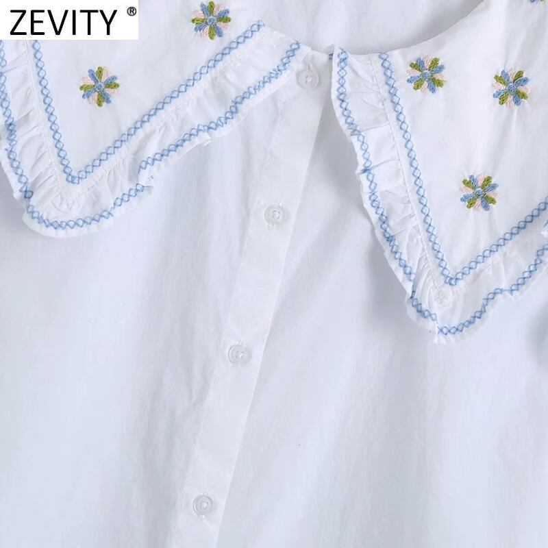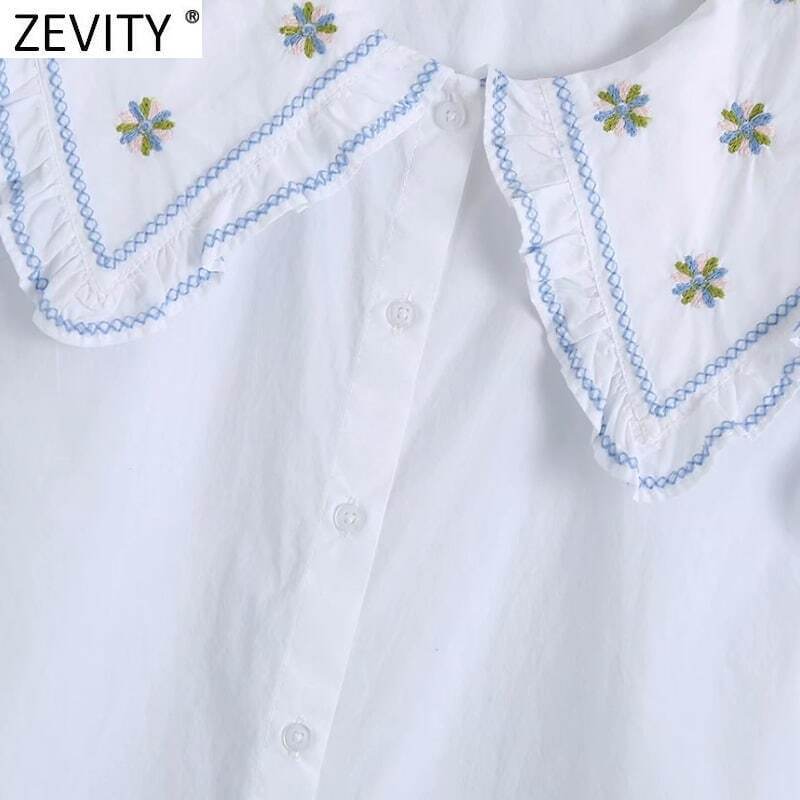 Zevity Women SweetEmbroideryピーターパンカラーホワイトポプリンシャツSleevelssフリルブラウスRoupasシックなトップスLS9279 Amy90187091081