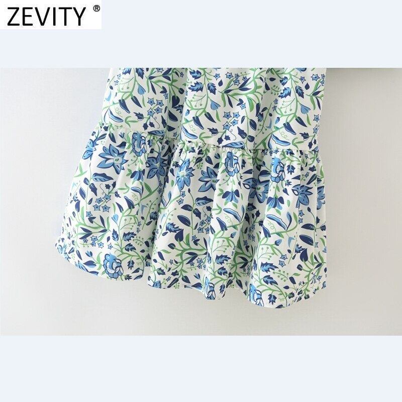 ZevityWomenヴィンテージスタンドカラーフローラルプリントプリーツフリルミニドレスシックなパフスリーブスリムパーティー Amy26070270064
