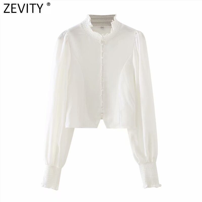 レディースストレッチカラーパールホワイトショートシャツ スリーブブラウス トップス ランタンスリーブ エラスティック 伸縮 真珠 Amy25565661819