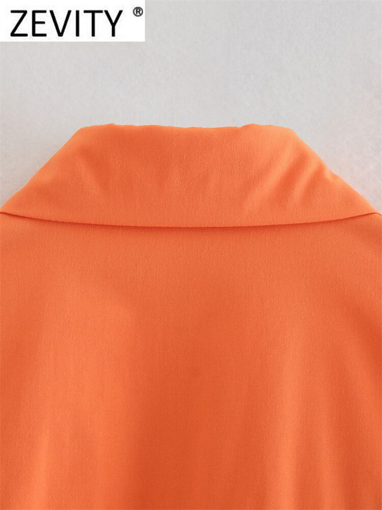 レディースオレンジカラーシングルブレストシャツ ブラウス 長袖スリーブトップス ロング シンプル 会社 学校 通勤や通学にも Amy10726895590