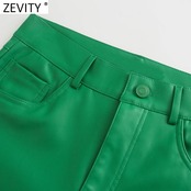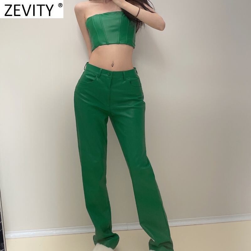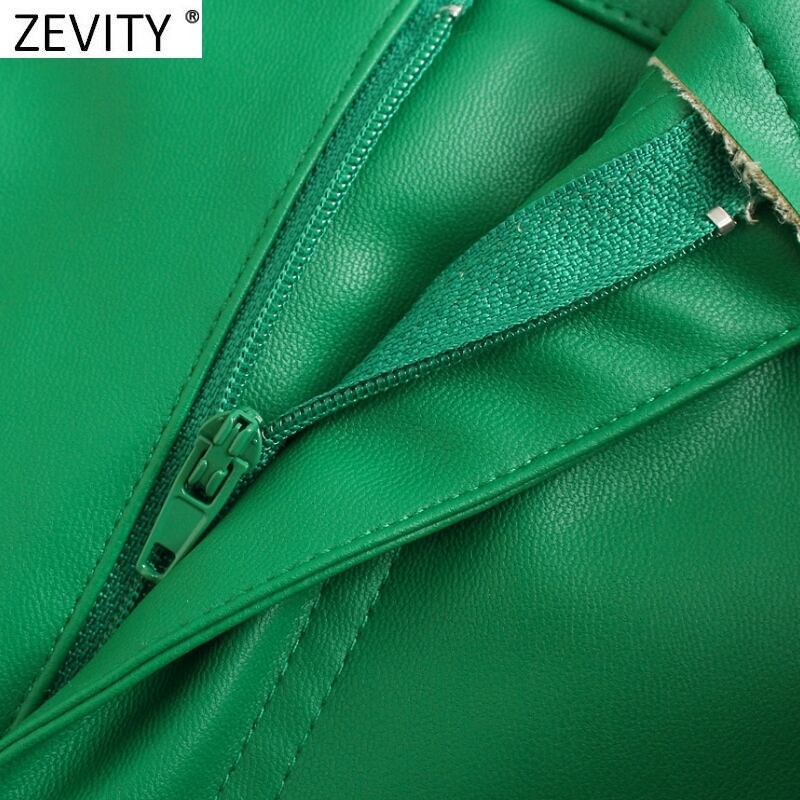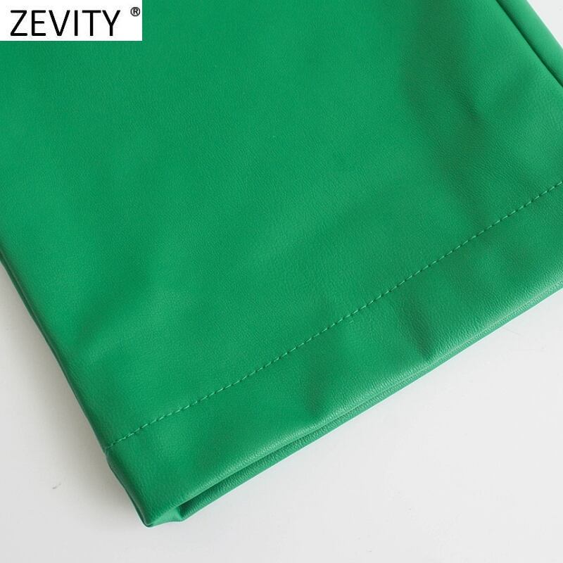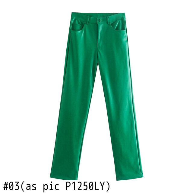 レディースソリッド レザーグリーンスリムパンツ ジッパー ソリッドカラー Amy6916614788