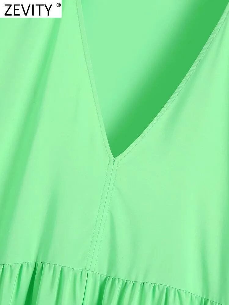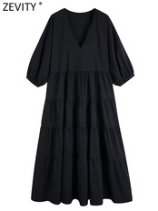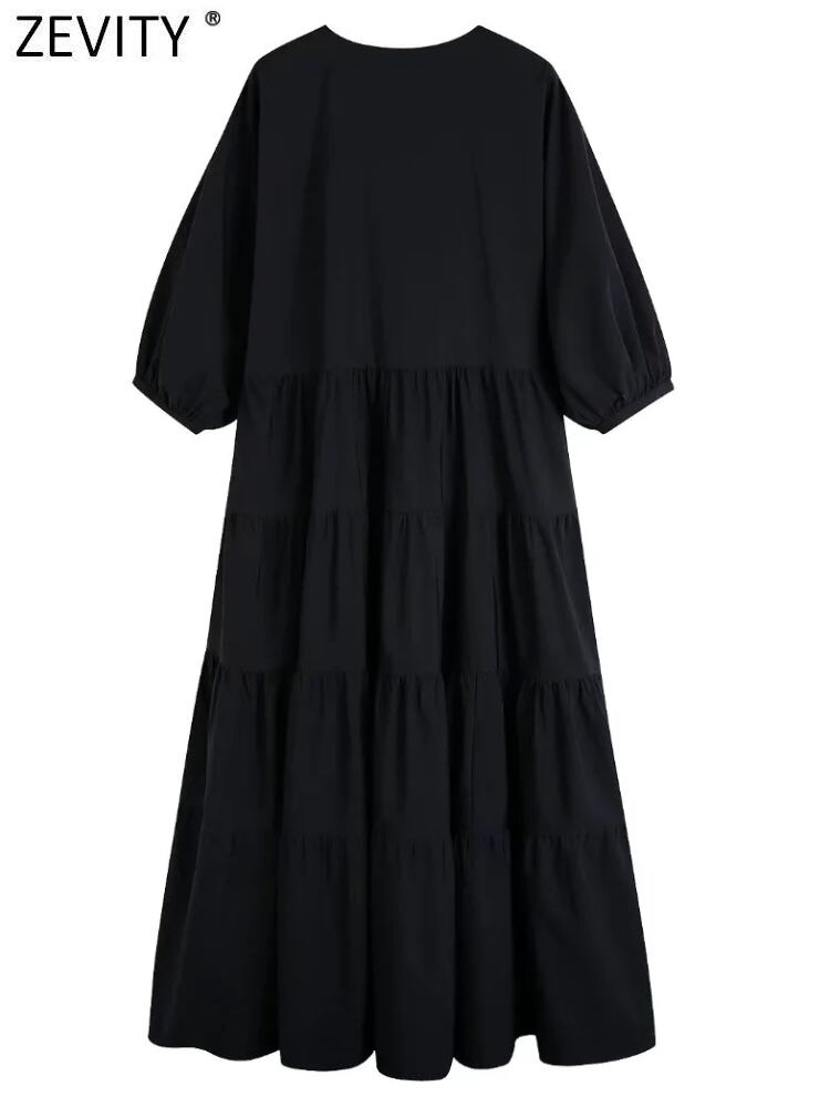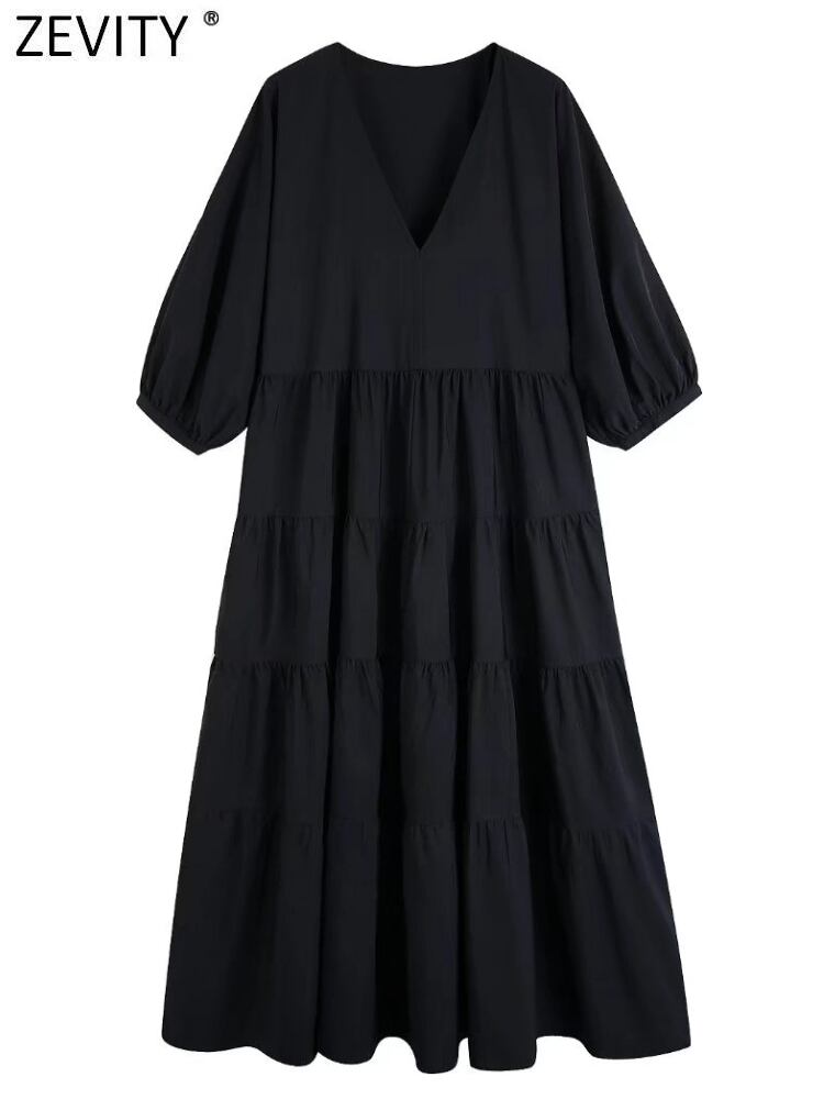 レディースVネック四部袖スリーブソリッド パッチワークルーズミディドレス ソリッドカラー Amy87100749219