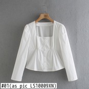 レディーススタイルカラーホワイトブラウス ジッパーシャツトップス スクウェア シンプル 会社 学校 通勤や通学にも Amy17813192881