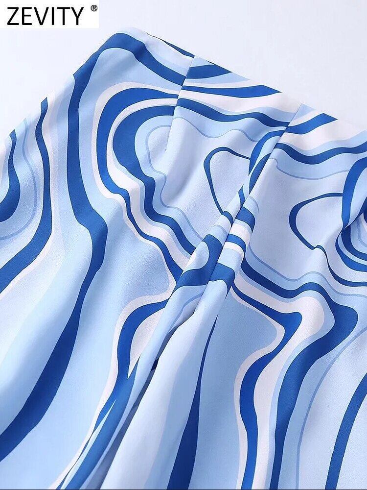 女性コントラストウェーブプリントフレアパンツシックなジッパーフライサイドスプリットパンツパンタロンP1182