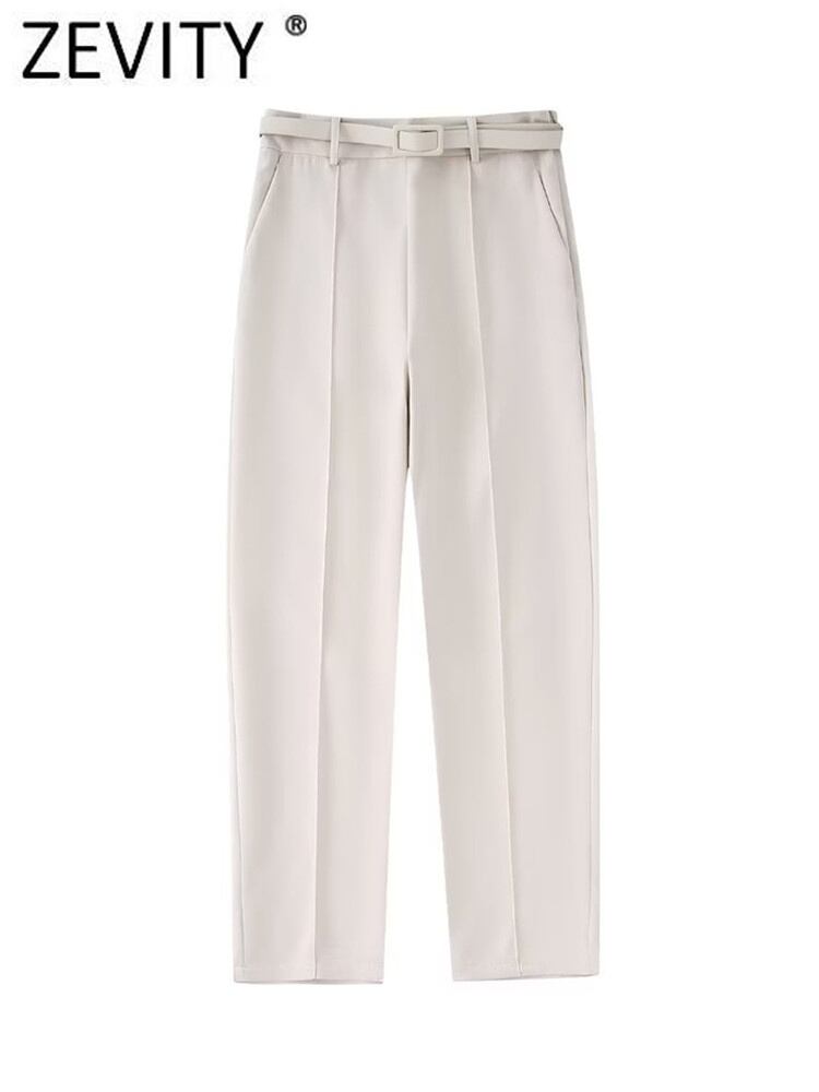 女性無地ベルトスリム足首丈ストレートパンツシックなジッパーフライパンツパンタロンP1801 ハーネス ソリッドカラー