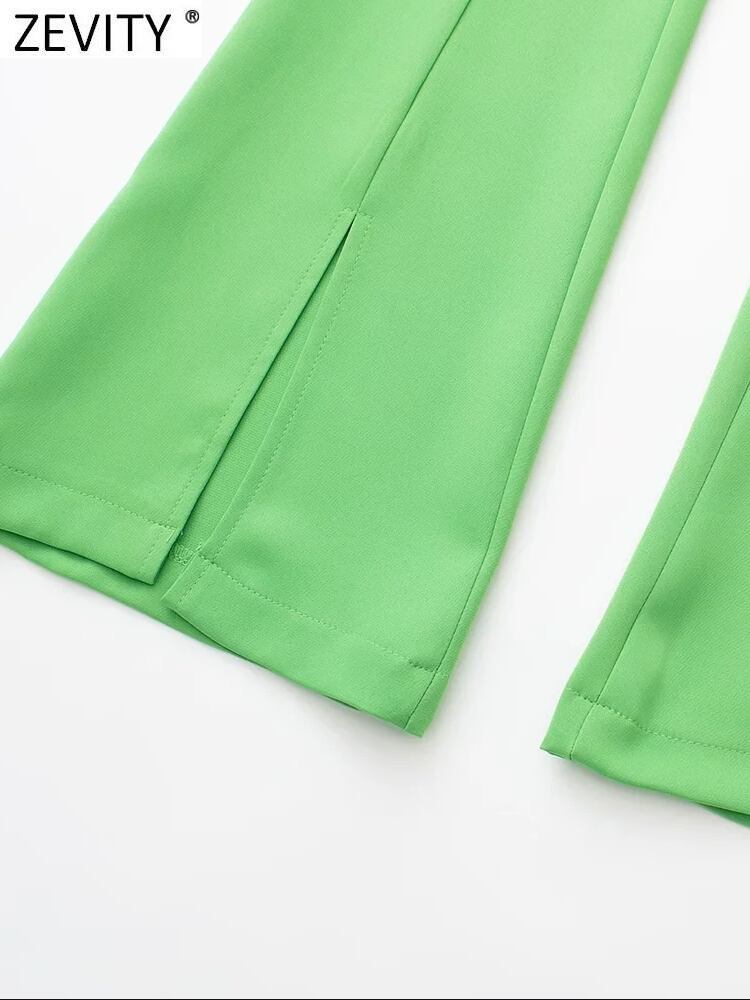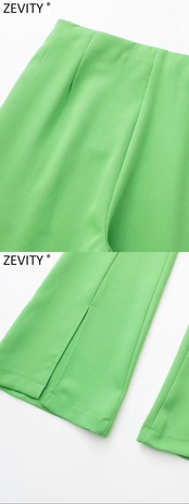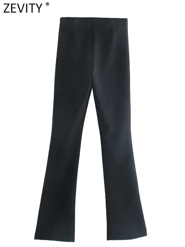 女性無地裾スプリットスリムフレアパンツシックなサイドジッパーフライロングパンツパンタロンP1174 ソリッドカラー