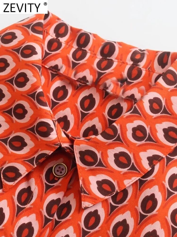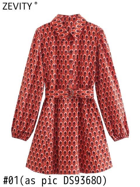ZEVITYWomenGeometricプリントバックルサッシシャツドレスオフィスレディシックポケットパッチスリム 会社 学校 通勤や通学にも
