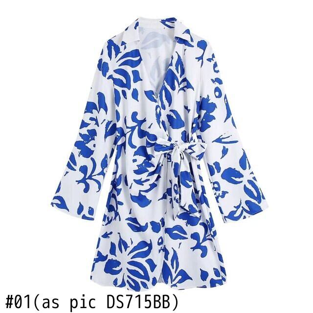 女性グラフィティプリントラップスリムミニシャツドレスオフィスシックボウタイドベスティドスDS715 リボン 会社 学校 通勤や通学にも