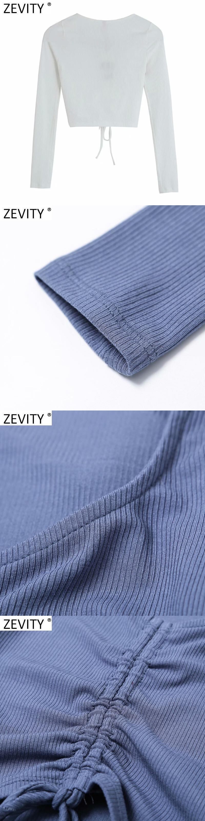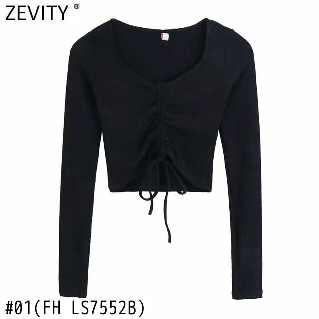 2021女性シンプルVネックプリーツレースアップ長袖シックなキャミスタンクニットスリムTシャツクロップトップLS7552 ロング