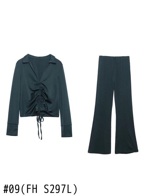 女性の伸縮性ウエストソリッドフレアパンツシックなベーシックスリムロングパンツパンタロンP1297 エラスティック ソリッドカラー