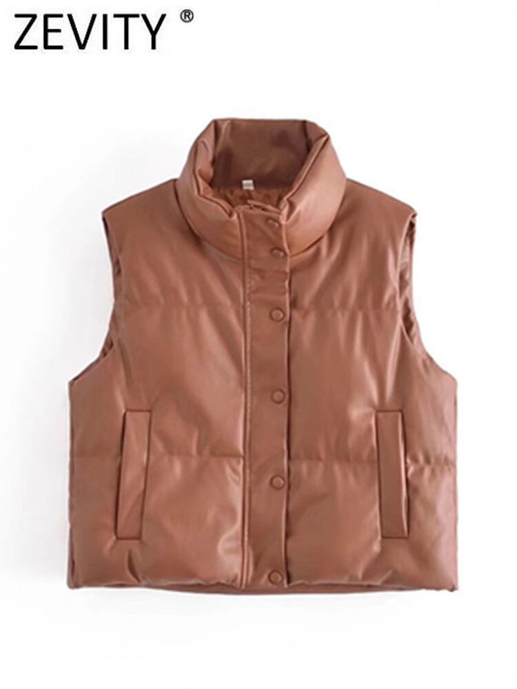 女性ノースリーブコットンパッド入りレザーベストジャケットブレストチョッキシックなアウタートップスCT500