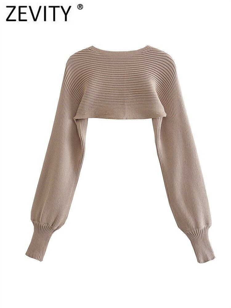女性無地オープンステッチ編みオーバースリーブセーターシックな長袖ショートコートクロップトップSW1119 ロング ソリッドカラー