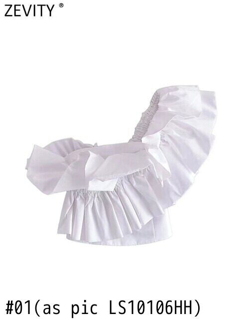 女性セクシーシングルショルダーカスケードフリルポプリンスモックブラウスレディシックエラスティックサイドジッパーシャツトップスLS10106 伸縮