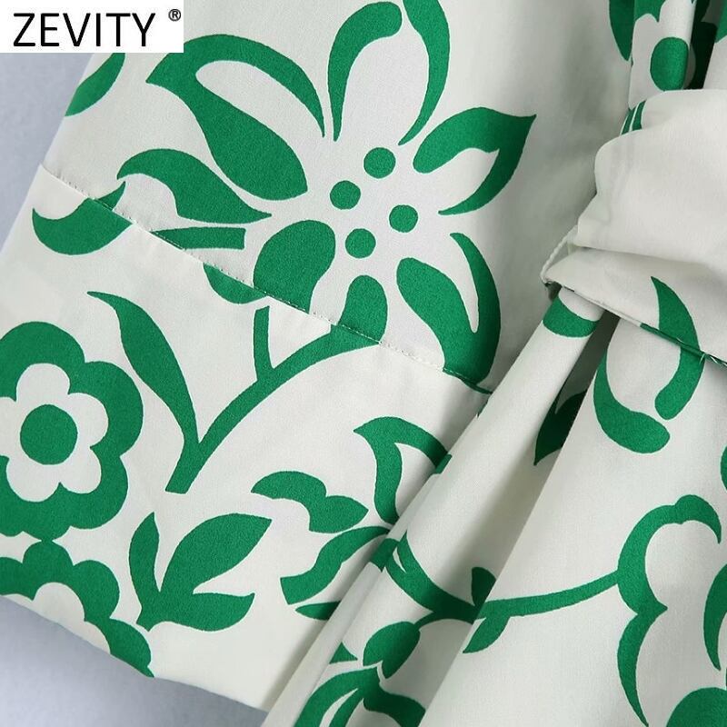 2021年女性グリーンフラワープリントボウサッシュシャツドレスシックターンダウンカラーブレストベスティドスDS8570 リボン フラワーデザイン