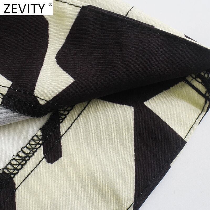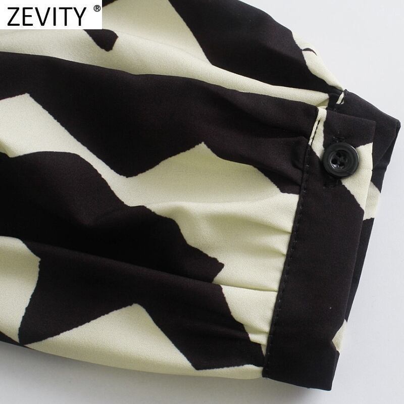 ZEVITYWomenVネック幾何学プリントサッシAラインミニドレスシックなランタンスリーブスリム