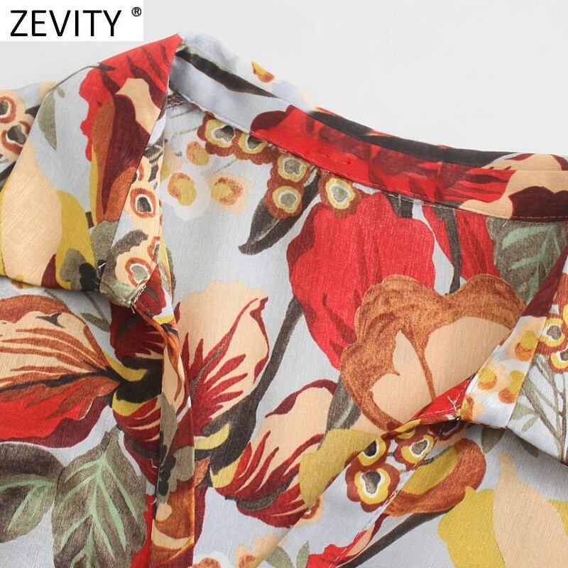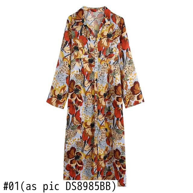 ZEVITY2022女性トロピカルカラーマッチングフローラルプリントシングルブレストミディドレスシックな長袖サテン ロング 花柄