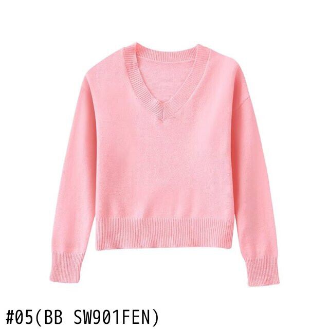 女性シンプルVネックソフトタッチパープルニットセーターシックベーシック長袖プルオーバートップスSW901 ロング