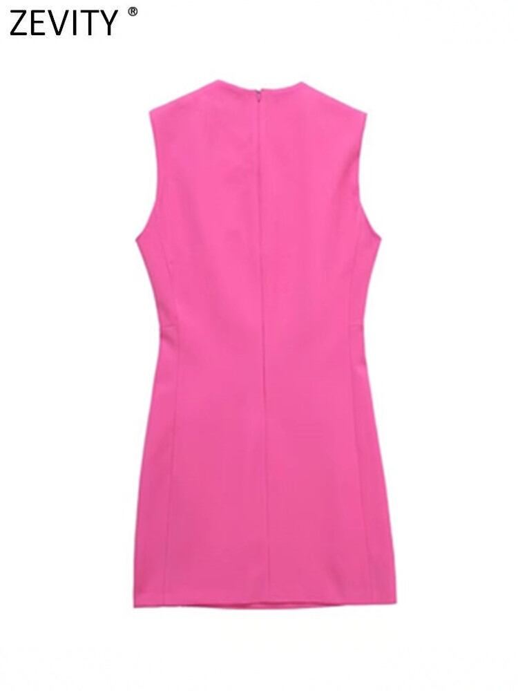 女性Oネックノースリーブソリッドスリムミニドレスレディシックバックジッパーベストパーティー ソリッドカラー