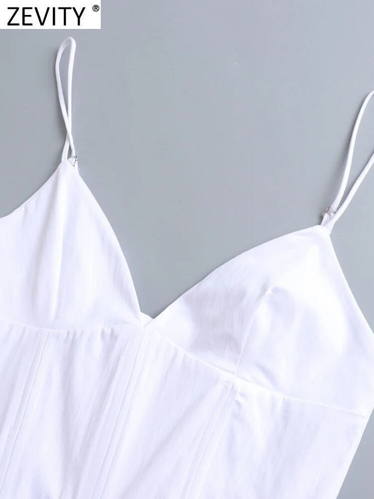 女性セクシーディープVネックプリーツホワイトポプリンスリングミニドレスシックバックジッパーサマーベスティドスDS9423 夏物