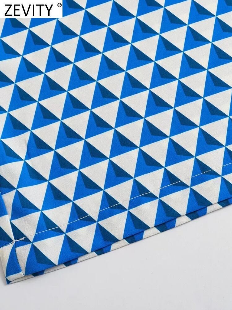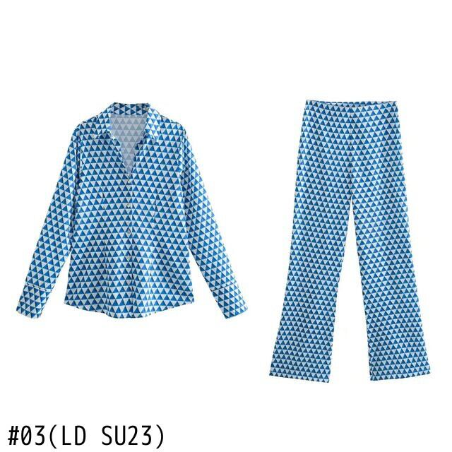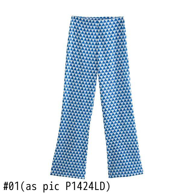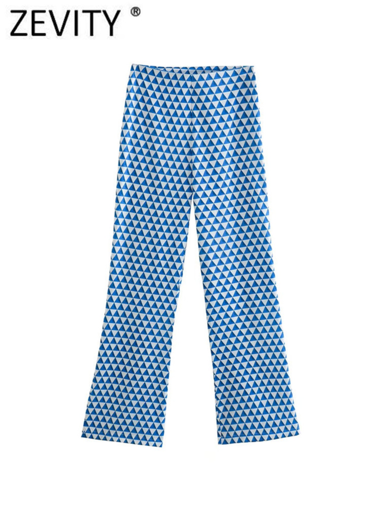 女性コントラスト幾何学プリントスリムペンシルパンツシックなジッパーフライロングパンツパンタロンP1424