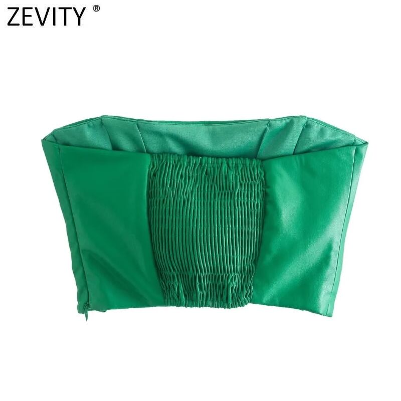 2021年女性セクシーストラップレスグリーンフェイクレザーシックショートキャミスタンクレディサマーバックエラスティックサイドジッパークロップトップスLS9799 伸縮 夏物 ファー